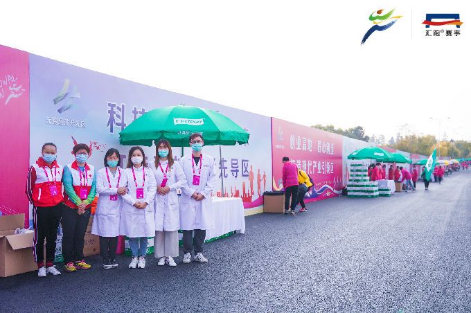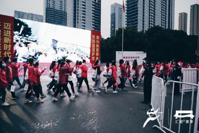开赛日当天凌晨4时,768名志愿者已集结完毕,相继奔赴主要赛道及场地开始赛前准备工作。比赛开始后,沿线各处志愿者严阵以待,以饱满的精神状态坚守在各项志愿服务工作岗位上。其中,485名赛道志愿者主要服务在前半程的赛道沿途补给站,赛事过程中他们将饮用水及食物补给摆放整齐,方便参赛者拿取;93名医疗志愿者则分布于赛道的各医疗点,为跑者比赛期间提供健康咨询和紧急救护;180名啦啦队志愿者在赛道旁手持标语,为经过的每一位参赛者加油助威;另有10名志愿者为央视节目录制提供后勤服务,得到了节目组的一致肯定。志愿者们以热情、专业、高效的志愿服务,圆满完成大赛的各项工作任务,赢得赛会单位和参赛跑者的点赞。