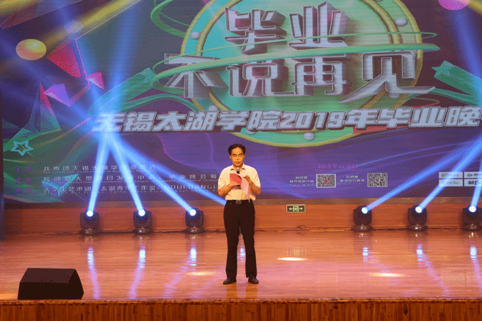 本网讯 6月18日晚,无锡太湖学院2019年毕业晚会在工科楼大礼堂举行。校长徐从才,校领导何宏金、王心如、丁涛、陈晓东,各二级学院院长、副院长、党总支副书记、各职能部门负责人等出席了晚会,与毕业生们共同度过了一个充满惊喜和感动的夜晚。
