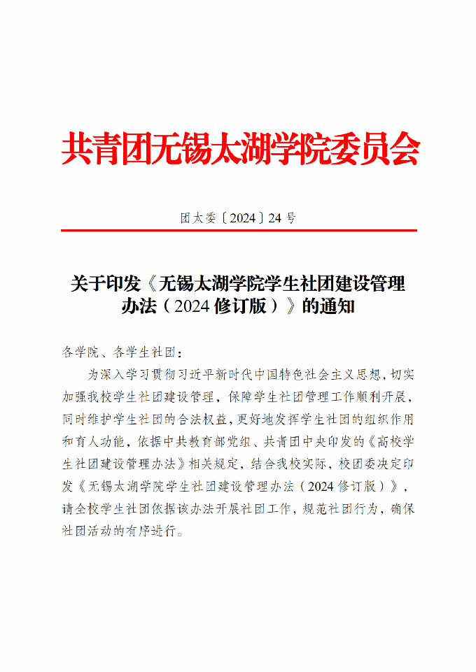 关于印发《无锡太湖学院学生社团建设管理办法(2024修订版)》的通知