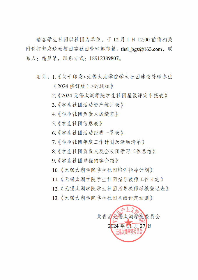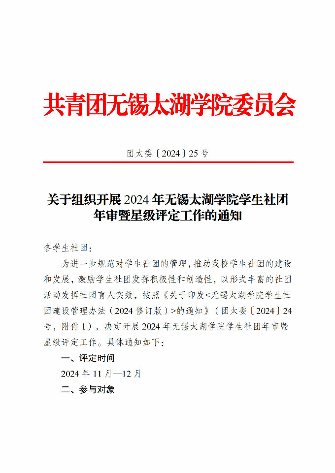 关于组织开展2024年无锡太湖学院学生社团年审暨星级评定工作的通知