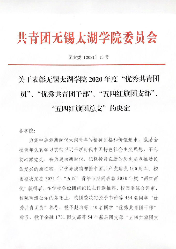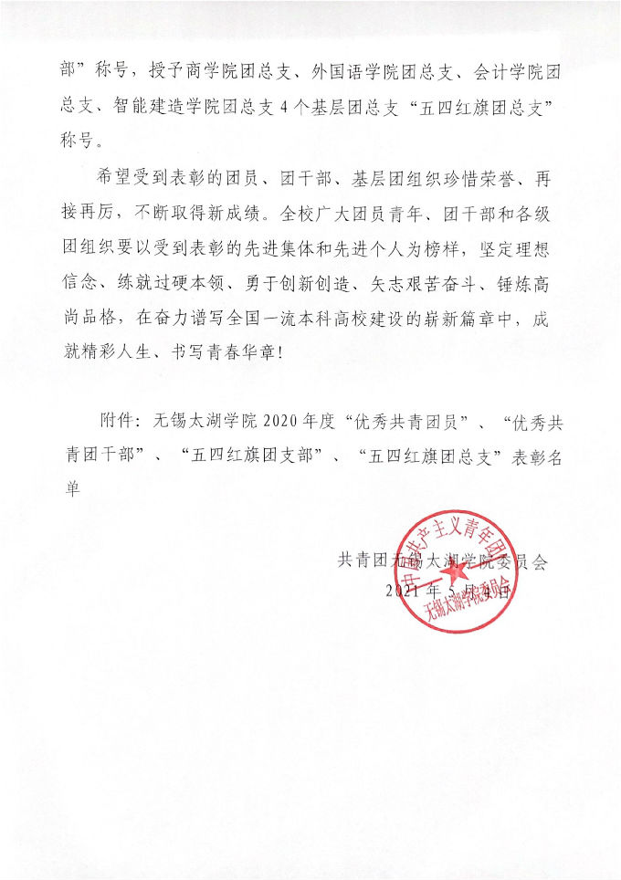 附件:无锡太湖学院2020年度“优秀共青团员”、“优秀共青团干部”、“五四红旗团支部”、“五四红旗团总支” 表彰名单.pdf