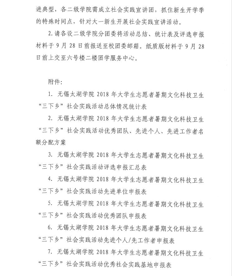 附件4:无锡太湖学院2018年大学生志愿者暑期文化科技卫生“三下乡”社会实践活动先进单位申报表.docx