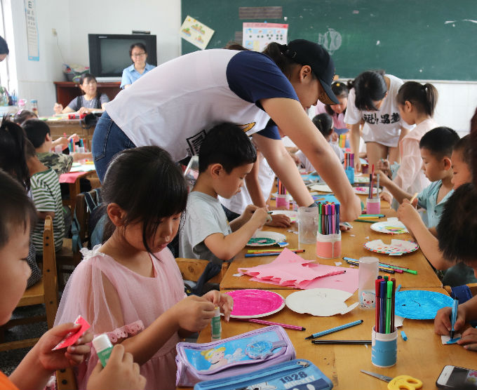 在调研期间我们做好了充足的准备,也与园方做了一些具体的活动规划;在活动期间,无限队的同学认真负责,运用自己所学专业知识教授孩子们一些自己的心得,与孩子们共同实践作画。孩子们求知若渴的眼神,无限小分队耐心指导的身影共同营造出了一幅美丽和谐的画面。无限队的同学们协助小朋友们完成了各具特色的作品,孩子们显得异常兴奋,无限队的小伙伴们也感到颇有成就感。再最后告别时刻同学们也是依依不舍,虽然只有小小的一节课,但在这一堂课之中,我们感受到的是我们与幼儿园小朋友的心灵也在慢慢靠近。