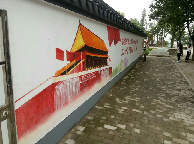 传统村落的灰墙瓦盖,给人一种疲乏沉闷感。十九大后,为改善居民生活水平,调动人民建设新农村的积极性,居委会居民家的墙壁涂上了白粉,刷上十九大宣传标语,在潜移默化中激励人民为自己、为国家奋斗。