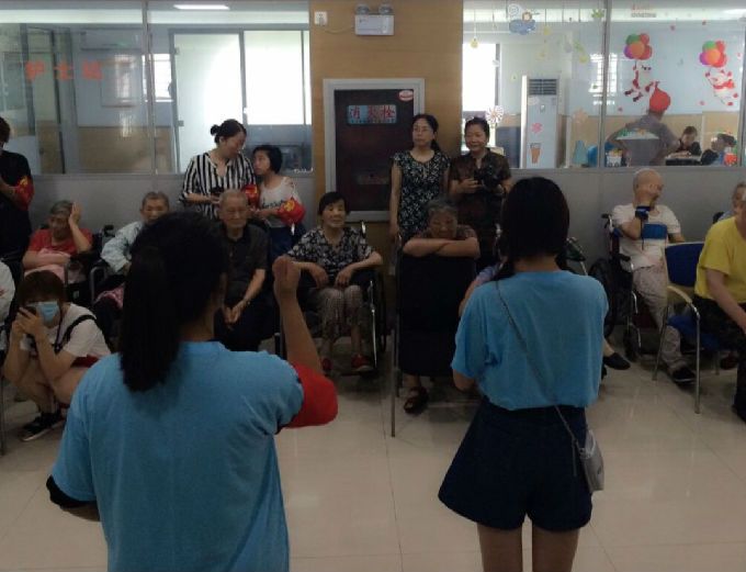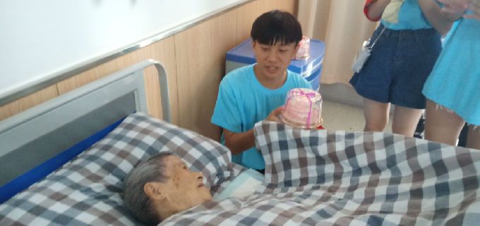7月14号,小组成员再次来到养老院,这天是个特别的日子——生日会,“梦之翼”小分队的同学们也趁着这个机会向老人们表达最诚挚的祝愿和关心,并把这种关心转化为表演和宣讲等节目,小组成员精心准备了手语表演《刚好遇见你》;并给他们普及了当下十九大的主要精神、宗旨。让老人们切身参与到社会中,增强他们的社会参与感;炎炎夏日,天气湿热多变,同学们又结合当下天气给老人们做了一个小小“气候与健康管理”的宣讲;活动最后,同学们合唱了《再见》,老人们跟着音乐一起打着节拍,挥动双手,露出满满的成就感与满足感。活动结束后,同学们端着蛋糕和长寿面逐个送到老人的身边,大家集体为老人唱生日歌,送生日祝福。望着老人们开心的面容,一切都成了最美的安排。