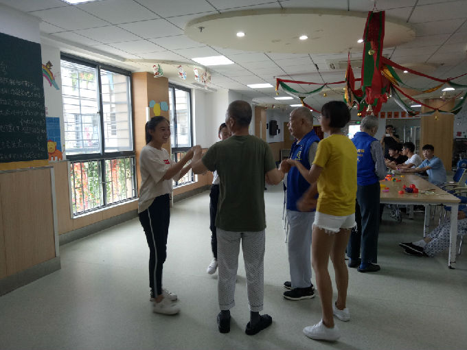 7月12日,“梦之翼”小组成员集体来到养老院里,此次活动主要方向为有智力缺陷的老人们。他们有的记不起家人,有的智力下降到童龄阶段,也正因此,他们的世界变得很简单、纯洁。小组成员们和老人一起唱歌、跳舞、玩游戏、搭积木……有的老人虽然记不得很多事,但当看到同学们一起开心玩耍的一幕幕时,都不禁露出了欣慰的笑容。有位老爷爷不知是因为感动还是因怀念起了以前的青年时光,默默地流下热泪。他忘记了很多事,却在一切都重现时,变得和以前一样渴望阳光。在小组成员和老人们的相互配合下,隶属土木工程系的同学们共同搭建成了一个有爱心作为装饰的房子。它满载着社会每个人对于老人们的关爱与呵护。