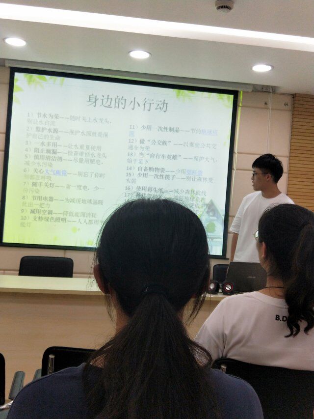 生态文明是新时代的倡导,保护环境是新时代的要求,对于保护环境的意识,人们都会有,但真正去执行的却没有几个。我们小组成员设计了环保宣传单并且印制,发给社区居民、当地工人、门卫和路人,并且向他们讲解环保知识,让他们认识到环保的重要性,通过交流让居民更加的了解绿色环保,同时也更好地去执行这一理念。