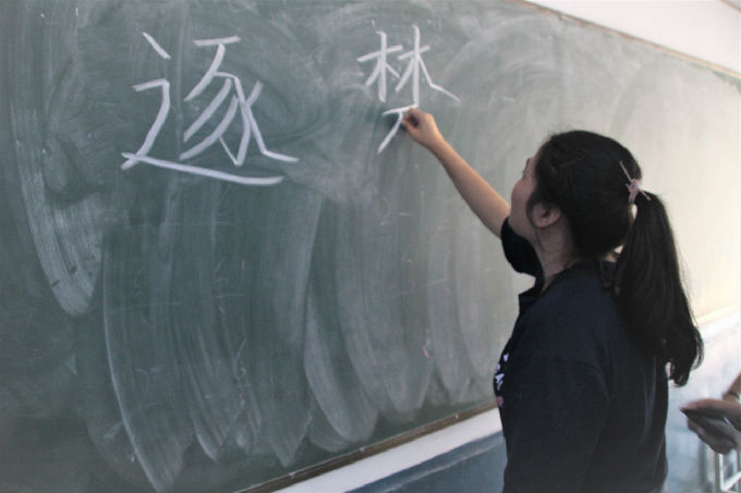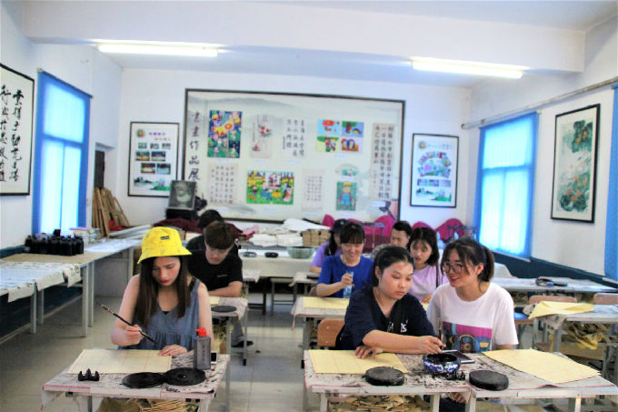淮北市石选中学位于淮北市烈山区,生源以初中生为主。首先,由学校负责老师带着我们参观了校园、图书室等,介绍了学校的大致情况和学生学业基本情况,并且安排书法老师带着我们体验学校特色的书法课程。