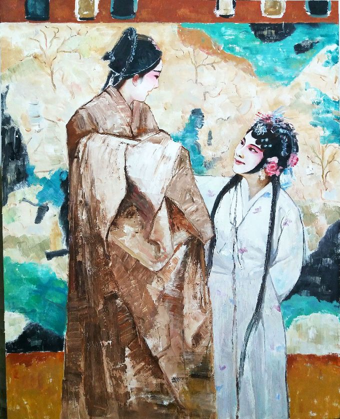 顾丽老师 铜奖作品 油画《贤步湖边》150cm*150cm