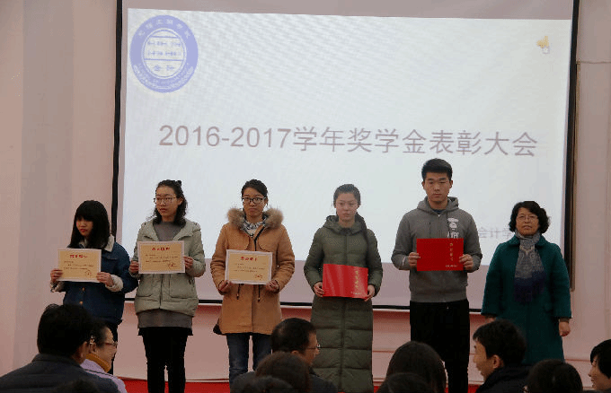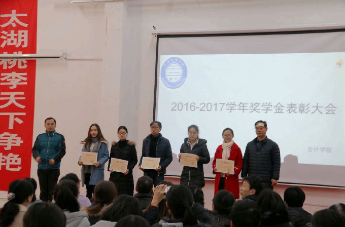 表彰大会上,会计学院党总支副书记蒋昊霖老师宣读了《关于表彰2016-2017学年无锡太湖学院综合奖学金获奖学生的决定》。汪璐琰老师和黄贵平老师为荣获校综合一等奖学金的同学代表颁奖;陈桢老师和傅艳艳老师为荣获校综合二等奖学金的同学代表颁奖;许奕老师和万娟波老师为荣获三等奖学金的同学代表颁奖。团委书记成丹铭老师为荣获优秀学生干部称号的同学颁奖;唐红珍教授为荣获校三好学生称号的同学颁奖;唐建荣教授为荣获校三好学生标兵称号的同学颁奖。