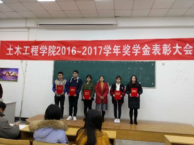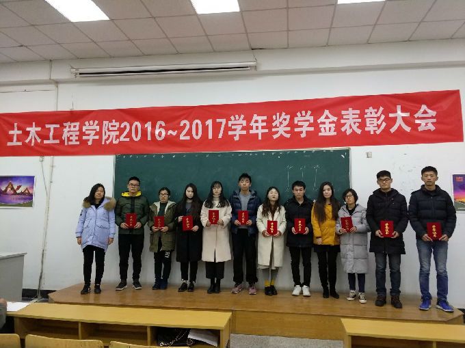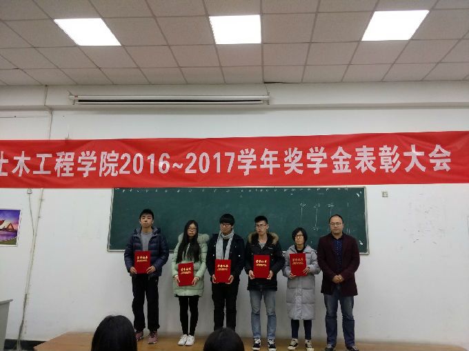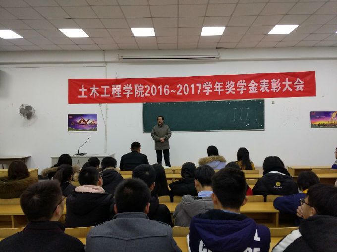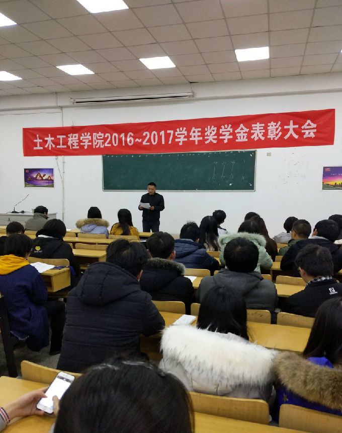 本网讯 生命之灯因热情而点燃,生命之舟因拼搏而前行。土木工程学院2016-2017学年奖学金表彰大会于12月27日晚,在6—122教室隆重召开。本次大会以鼓励学生勤奋学习为目的,通过树立榜样表彰先进的方式,促进全院学生向优秀看齐,向先进靠拢,更加积极主动地投身于学习生活中。土木工程学院张院长、沈书记、学工秘书余老师以及全体辅导员出席会议。会议由余老师主持。