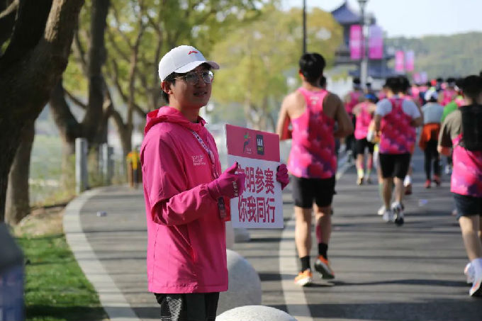 樱花纷飞的赛道上,跃动的粉色皮肤衣与奔腾的跑者身影交相辉映。太湖青年们以饱满的热情和严谨的态度,为这座万亿之城增添了一抹动人的青春底色。