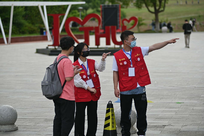 服务期间志愿者们积极引导考生找寻考场方位,耐心为其答疑解惑,贴心提供考场服务,舒缓考生的紧张情绪,让大家感受到了太湖青年的热情和友善。早上六点半,志愿者们就已在各自的岗位上做好了准备工作。从进校接车指引、人数清点、体温测量,午餐时的配餐发放、收餐整理,到考后引导师生按照指定路线离开学校,校园每一处都活跃着暖心的太湖“志愿红”。志愿者们以饱满的热情、负责的态度圆满完成工作,充分展现了太湖青年的志愿风采。