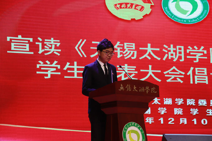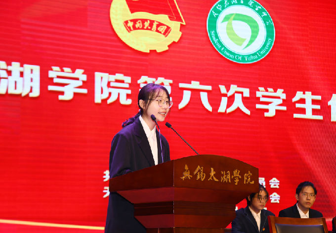 在庄严的国歌声中,无锡太湖学院第六次学生代表大会拉开帷幕。首先,由江南大学学生会执行主席李睿璇宣读贺信,李睿璇同学对我校第六次学生代表大会的召开及学生会工作近年来取得的成绩表示祝贺,并希望两校学生会加强交流,共话发展。