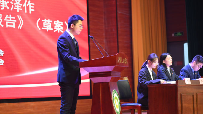 在第一次全体会议中,校学生会执行主席何承泽代表无锡太湖学院第五届学生委员会向大会作题为《青春向党,奋斗强国——不忘初心担使命,既往开来正当时》的工作报告,回顾总结过去一年校学生会的工作成果。在过去一年中,校学生会紧跟时代步伐,树立坚强信念,在日常工作中朝气蓬勃,在突发灾疫时义无反顾。在未来的工作中,学生会将继续贯彻落实党的十九届六中全会和全国学联二十七大会议精神,持续增强学生会组织的凝聚力、号召力、战斗力,不断提升大局贡献度、同学满意度、社会认可度,在“生逢盛世,重任在肩”的时代背景下续写我校学生会工作新篇章。