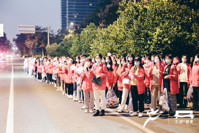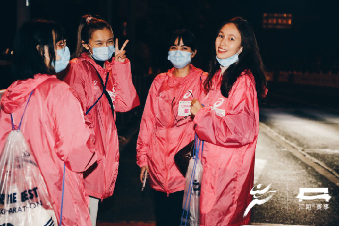 开赛日当天凌晨4时,768名志愿者已集结完毕,相继奔赴主要赛道及场地开始赛前准备工作。比赛开始后,沿线各处志愿者严阵以待,以饱满的精神状态坚守在各项志愿服务工作岗位上。其中,485名赛道志愿者主要服务在前半程的赛道沿途补给站,赛事过程中他们将饮用水及食物补给摆放整齐,方便参赛者拿取;93名医疗志愿者则分布于赛道的各医疗点,为跑者比赛期间提供健康咨询和紧急救护;180名啦啦队志愿者在赛道旁手持标语,为经过的每一位参赛者加油助威;另有10名志愿者为央视节目录制提供后勤服务,得到了节目组的一致肯定。志愿者们以热情、专业、高效的志愿服务,圆满完成大赛的各项工作任务,赢得赛会单位和参赛跑者的点赞。