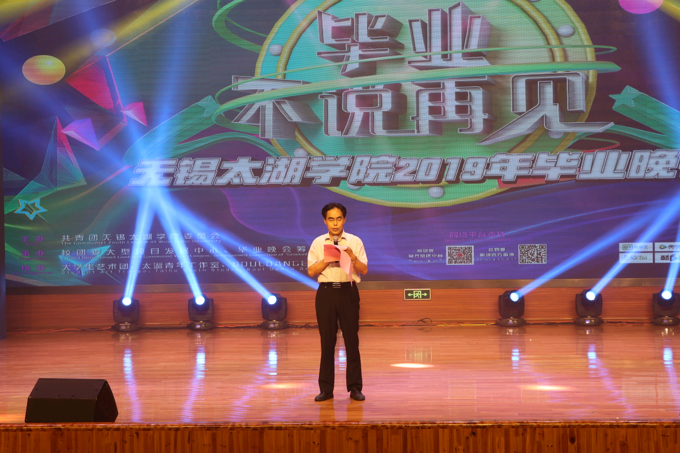 本网讯 6月18日晚,无锡太湖学院2019年毕业晚会在工科楼大礼堂举行。校长徐从才,校领导何宏金、王心如、丁涛、陈晓东,各二级学院院长、副院长、党总支副书记、各职能部门负责人等出席了晚会,与毕业生们共同度过了一个充满惊喜和感动的夜晚。